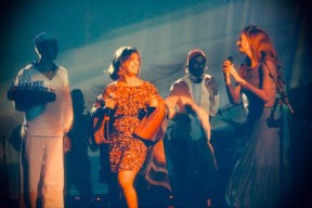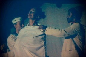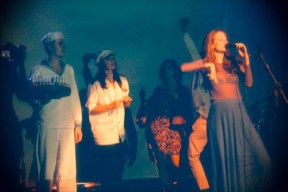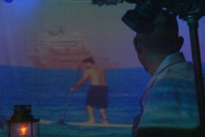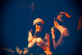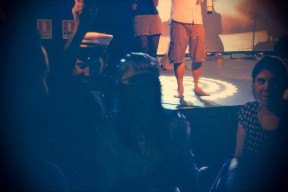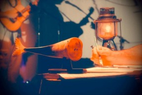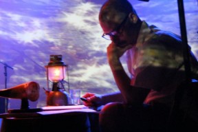 Criamos um espetáculo marítimo, uma NAU imaginária, que começava já com a entrada do público: em vez de usar a porta do teatro, os espectadores entravam pelo camarim e tinham que atravessar o palco para chegar à sua poltrona. Enquanto isso, os artistas já estavam em cena, numa jam session sincronizada com a vídeo-instalação Bravo-Radio-Atlas-Virus-Opera de Carla Zaccagnini, que registrou a travessia do canal do Panamá do topo do mastro de um veleiro. Os desenhos e os poemas de André Dahmer e Bruna Beber eram projetados ao vivo a partir de uma câmera posicionada atrás de uma mesa na lateral do palco. Alice Caymmi participou cantando duas músicas de seu avô, Dorival. Ao final da performance, o público recebia garrafas com diferentes versos criados pelos artistas. Este espetáculo foi encenado a primeira vez em agosto de 2012 e remontado em junho de 2014, por absoluto desejo de estarmos juntos novamente na mesma nau.